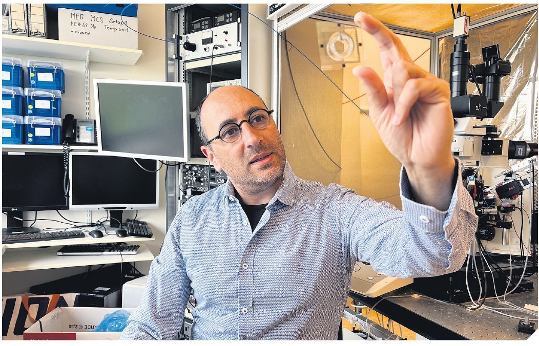 Daarmee wordt het mogelijk om de vroege hersenontwikkeling van een individu in het lab te volgen. ‘De klok van differentiatie is ongelooflijk nauwkeurig. In een organoïde zie je in hetzelfde tempo en in dezelfde volgorde de zenuwcellen ontstaan als in een echt brein. Dat geeft ons een ongekend model om neurobiologische processen te bestuderen.’Maar Kasri gaat nog een stap verder: met zijn team legt hij zulke organoïden op een chip met elektrodes om de activiteit van de zenuwcellen te meten. ‘Zo kunnen we zien of de cellen echt functioneren als neuronen: of ze actiepotentialen genereren, met elkaar communiceren en netwerken vormen.’