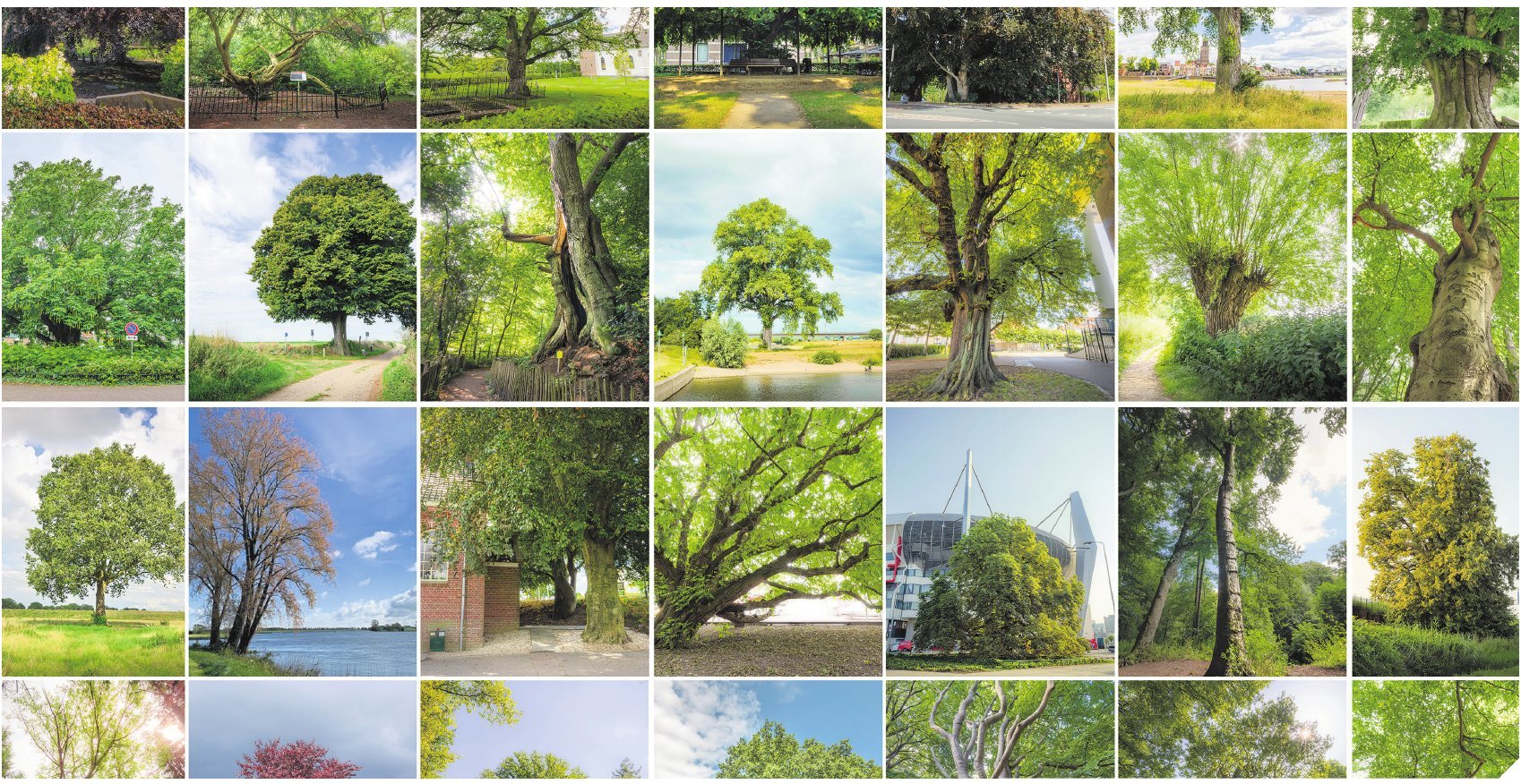 Collage bomen in Nederlandse landschappen. Foto's: Rob Visser Photography / SNBL Natuurfonds