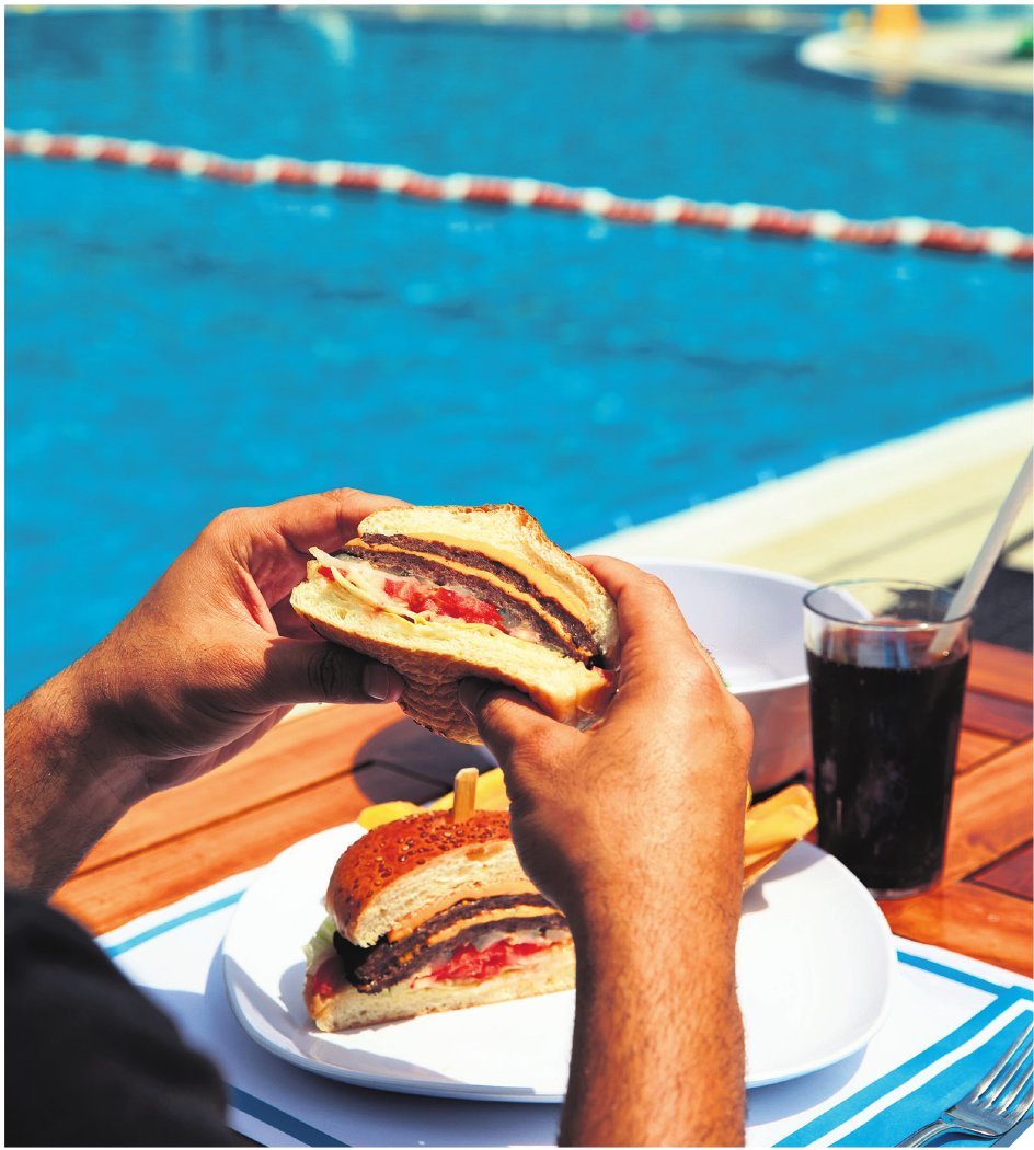 ‘Zwemmen na het eten is niet gevaarlijk’, weet inspanningsfysioloog Eric van Breda (Universiteit van Antwerpen / Dopingautoriteit). ‘Het kan wel oncomfortabel zijn.’ Wie veel of vet eet stelt de maag voor een uitdaging. ‘De maag is een grote spier, die je voedsel probeert te kneden. Is dat een grote brok, dan wordt dat lastig’, legt Van Breda uit. ‘Bij vet eten is gal nodig voor de vertering, wat na de maag gebeurt. Waar ander eten onder meer door maagsappen steeds kleinere brokken vormt, blijft vet eten een grotere massa. Dat kan resulteren in het gevoel van een steen in je maag.’ Niet prettig, ook niet tijdens het zwemmen.