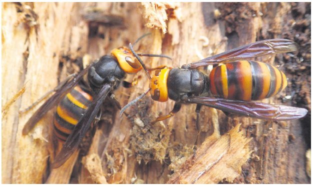 In de stad blijft de hornaar V. simillima steevast plattelandsvoedsel eten: zachte insecten. Foto: Saga Tatsuya.