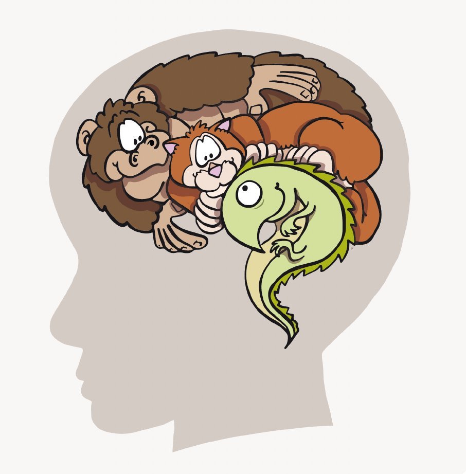 ‘Typisch een reactie van je reptielenbrein’ of ‘wees je zoogdierbrein de baas’. Het zijn zinnen waar menig zelfhulpboek vol mee staat. Het idee: het menselijk brein bestaat uit drie delen. Het reptielenbrein voor primaire instincten en in stand houden van algemene lichaamsfuncties, het zoogdierbrein voor complexere functies en emoties en het mensenbrein voor bewust denken. Neurowetenschapper Paul MacLean introduceerde dit driedelige brein in 1969, waarna het wereldwijd populair werd. Wat klopt er eigenlijk van?