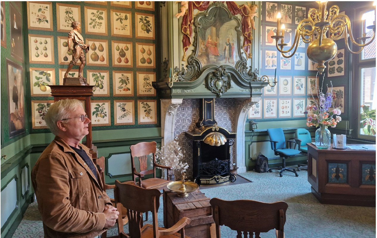 Rondleider Joop van Doorn in de monumentale Regentenkamer, de stijlkamer die als ontvangstruimte van museum Sow to Grow functioneert. Foto's: Moebius.