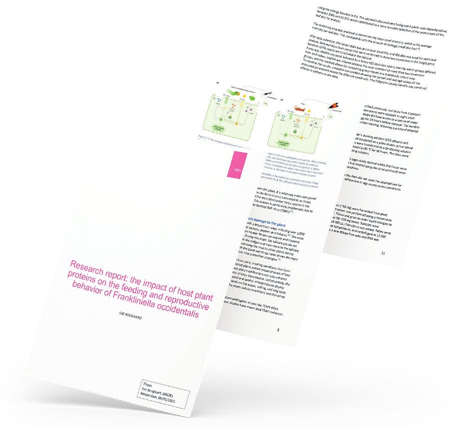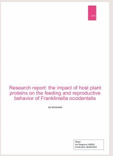 Titel: Research report: the impact of host plant proteins on the feeding and reproductive behavior of Frankliniella occidentalis Auteur: IJse Boogaard