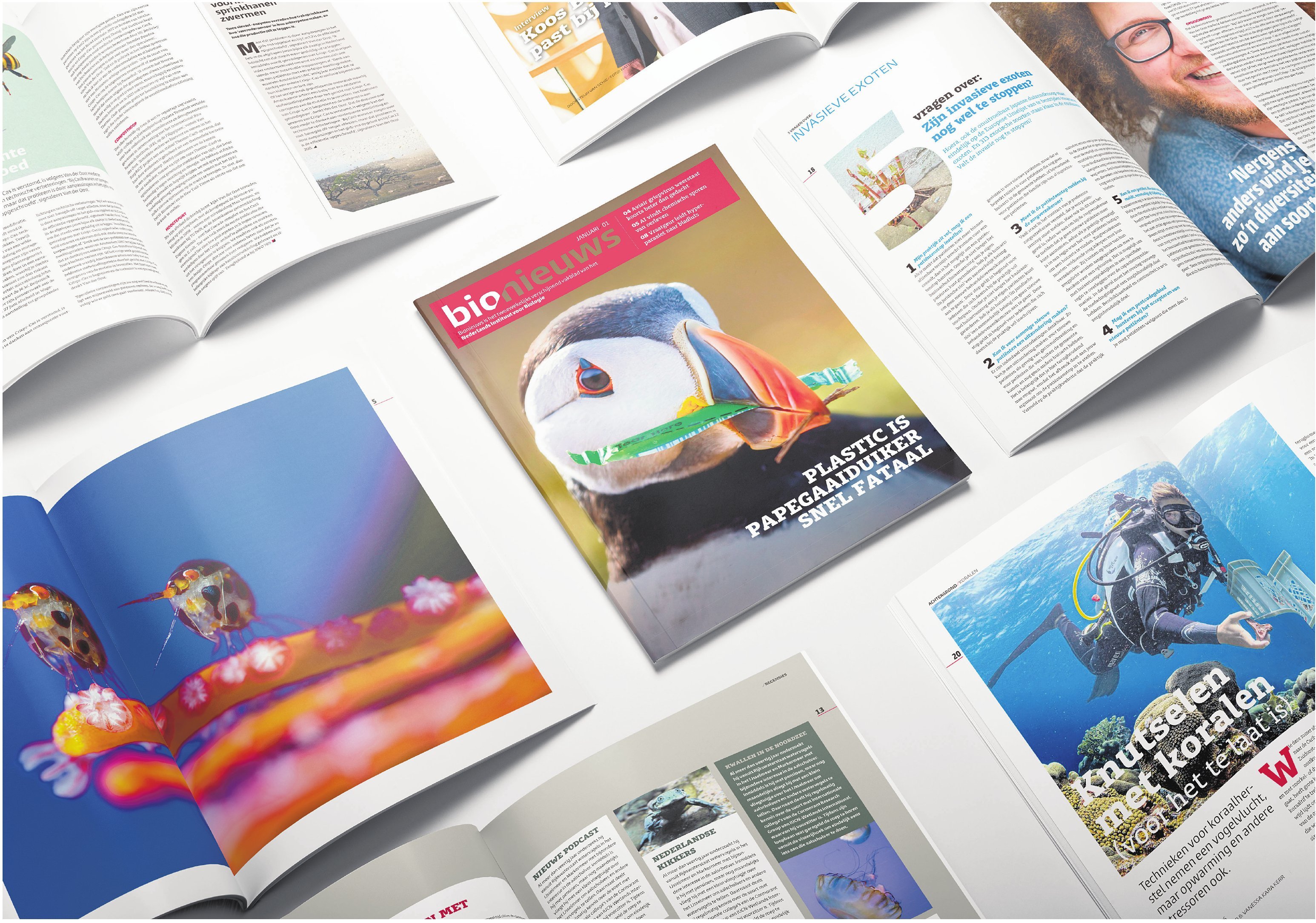 Bionieuws verandert. Vanaf januari verschijnt het vakblad dat biologen al 53 jaar elke twee weken op de mat krijgen in een nieuwe vorm: als maandmagazine, met een vernieuwde bladformule en een website waarop vrijwel dagelijks nieuws te lezen is. In oktober (Bionieuws 16) vertelden we hoe dit traject tot stand kwam. In dit artikel schetsen we wat lezers straks kunnen verwachten. Geen volledige rondleiding, maar wel een goede indruk van de keuzes, de lijn en de nieuwe logica achter het magazine.